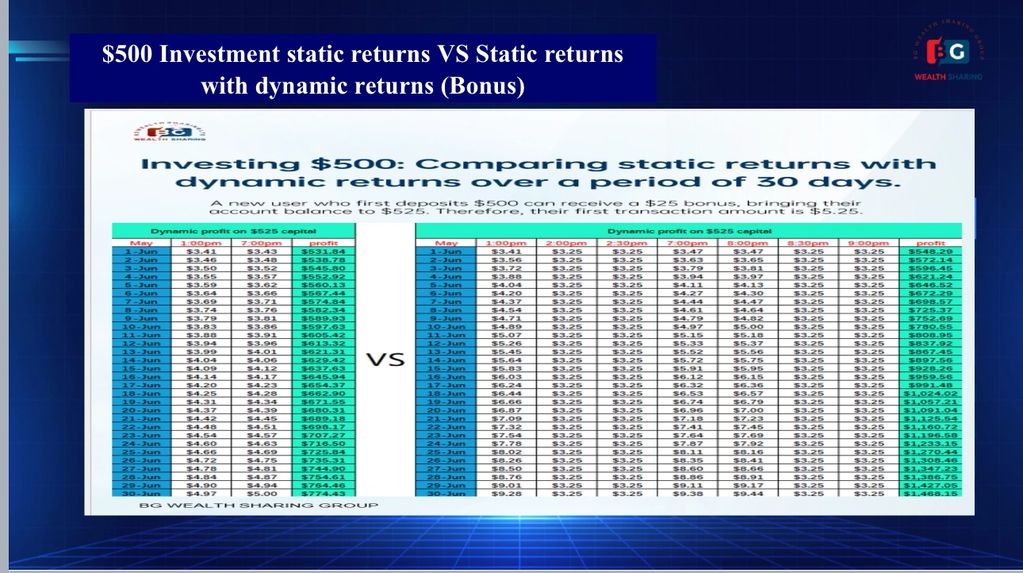 Start with a minimum amount in your account, and watch it grow! Here is an explanation of the static return vs the static return with bonuses from inviting traders.